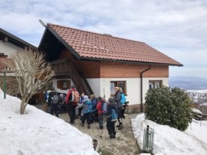 … ali do Dragovega doma na Homu. Ja, res je bilo precej mokro, a to nas ni oviralo, da ne bi zlezli na Kucelj pri Grižah, se malo razmigali in najedli ter nadihali svežega zraka. A sneg prav hitro pobira šila in kopita 🙂